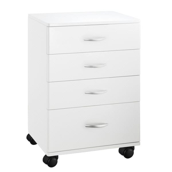 Elegant og moderne hvitlakkert tre tralle. Utstyrt med 4 skuffer og designet for praktisk oppbevaring av tilbehør. Enkelt å flytte rundt.Spesifikasjoner:Vekt: 21kgDimensjoner: B46xD33xH69 cm