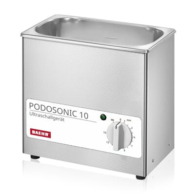 BAEHR Podosonic 10 kommer med hengende kurv og lokk for enkel rengjøring og desinfeksjon i en operasjon. Hele apparatet er av rustfritt stål som er hygenisk og lett å rengjøre. Praktisk lokk (sprutbeskyttelse) med drypp funksjon. Kommer med rustfri stålkurv og syrefast plastlokk.